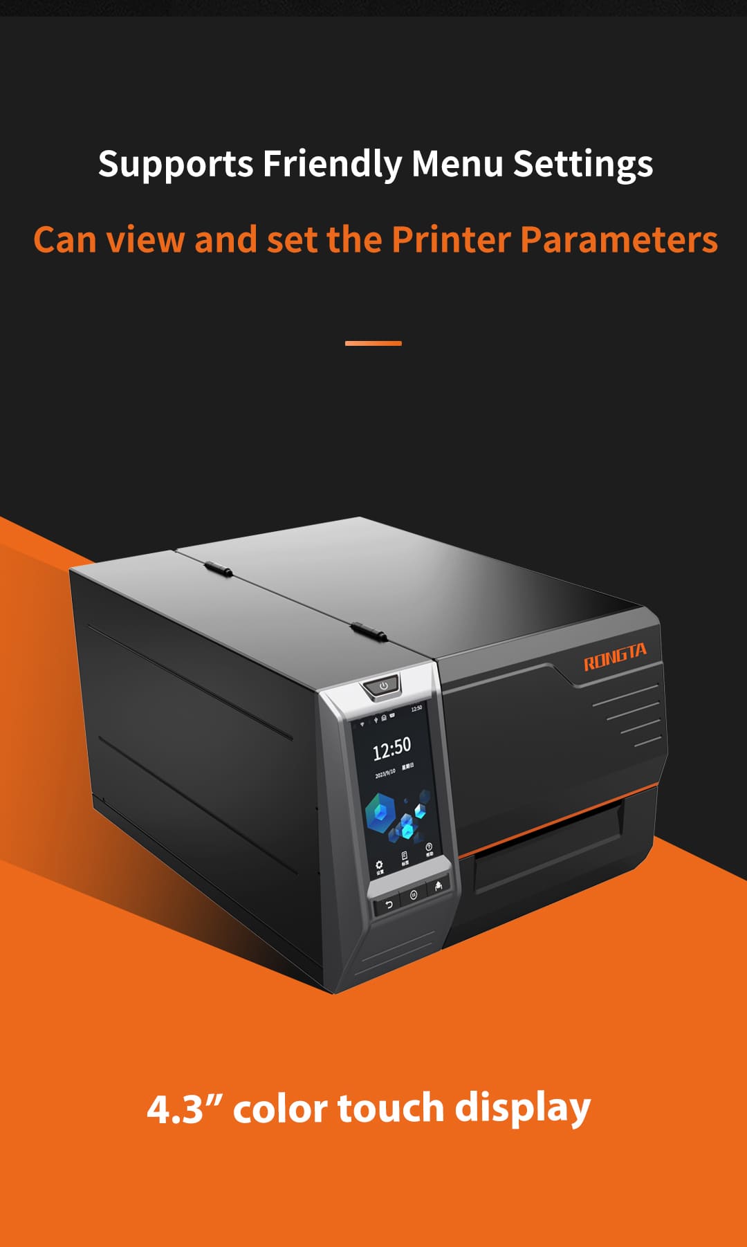 3. 4.3’’ color touch display, supports friendly menu settings, user experience more intuitive, can view and set the printer parameters, display print status, alarms, print test, etc.;