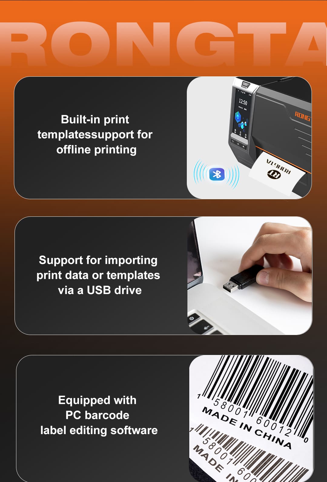 4. Supports long-duration continuous printing to ensure uninterrupted printing. Equipped with Bartender barcode label editing software;